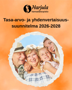 Harjulan kansalaisopisto toteuttaa tasa-arvo- ja yhdenvertaisuustyötä syksyllä 2025 uudistetun tasa-arvo- ja yhdenvertaisuussuunnitelman pohjalta. Suunnitelma sisältää oppilaitoksen tasa-arvon ja yhdenvertaisuustyön tavoitteet, toimenpiteet ja mittarit vuosille 2026-2028.