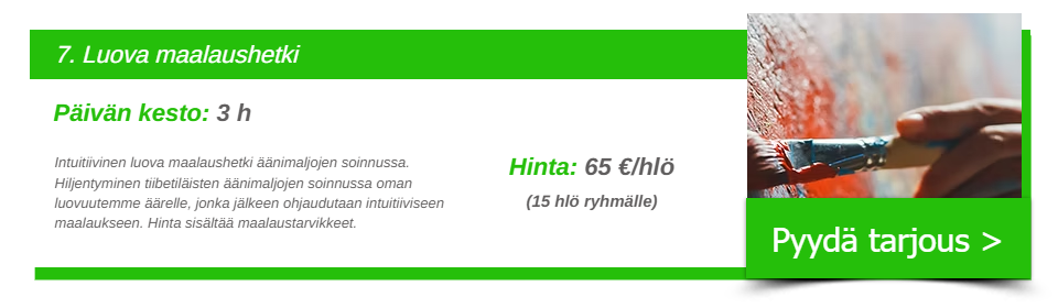 Hinnat sisältävät tilat, välineet, materiaalit, ohjauksen ja arvolisäveron.